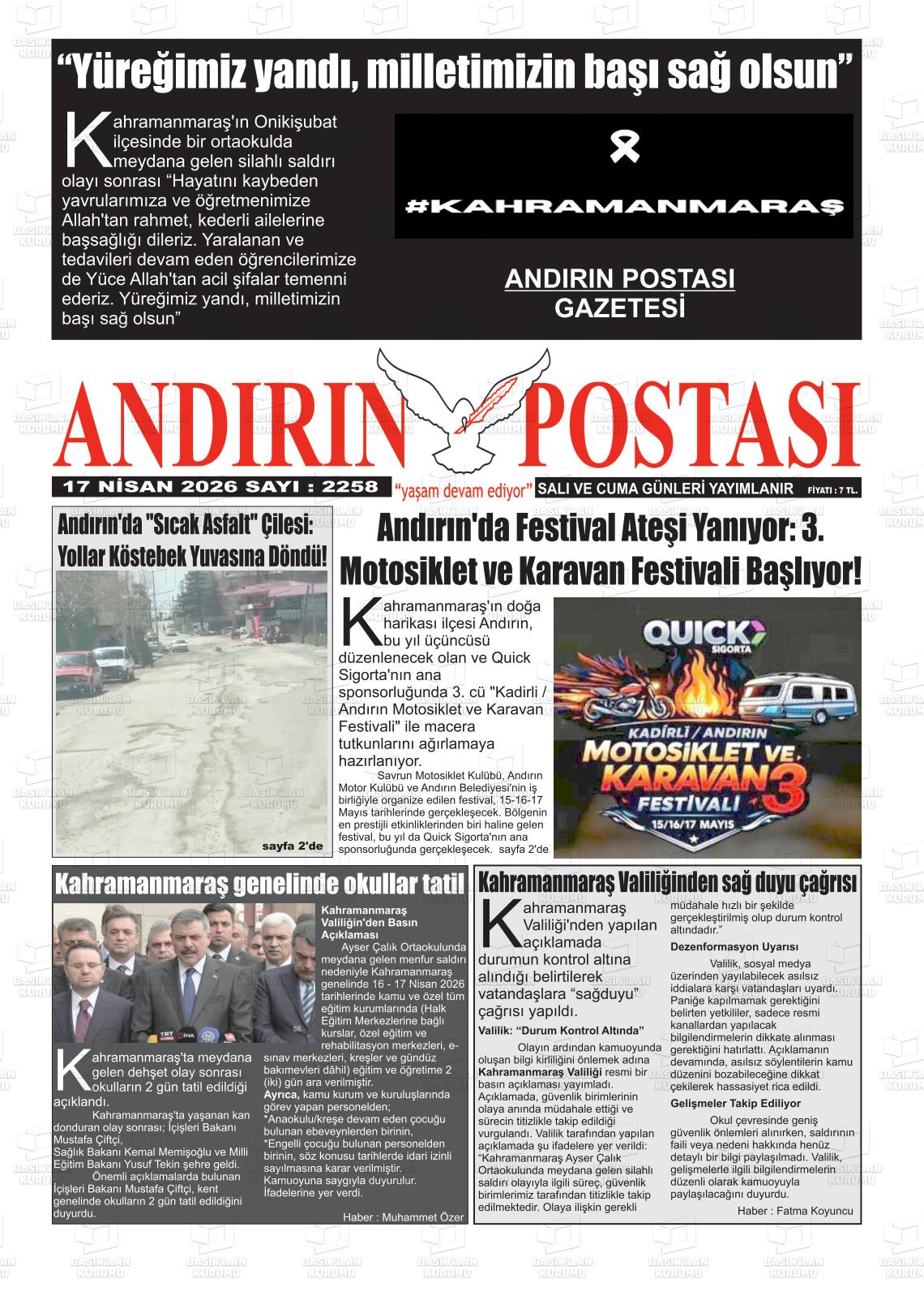 KAHRAMANMARAŞ MANŞET